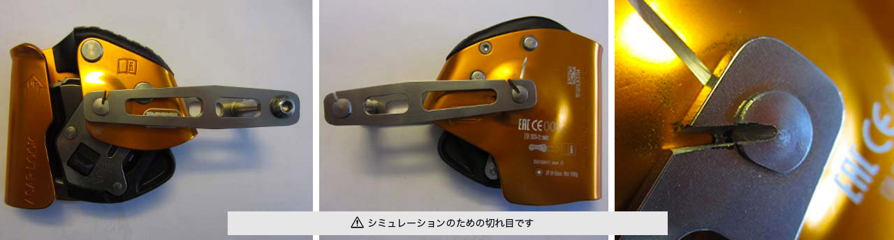 現在の状況:ユーザーが用具の定期点検を行っている際、ステンレススチール製アームにひびが認められる『アサップ ロック』を3つ確認しました。これら3つの『アサップ ロック』については、分析のためペツルへ返送されます。