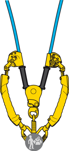 ・2つの ASAP LOCK の間のロープの長さを延長します(ロープも保護): これにより、ロープが破断した場合でも、ASAP LOCK の下に素早くストッパーノットを結ぶのに十分なロープが確保され、その後の作業を安全に行うことができます。
