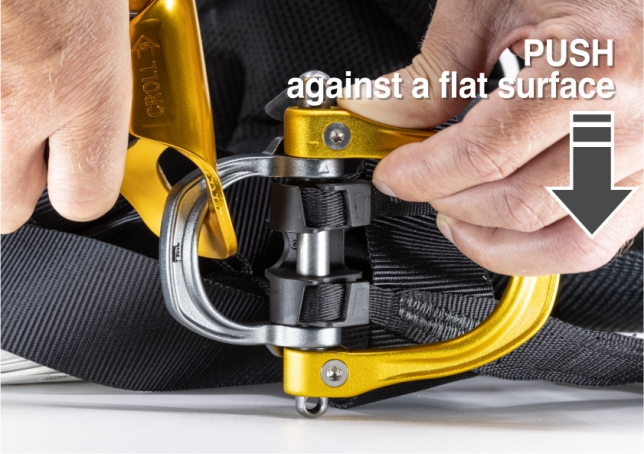 ケース A:お手持ちのハーネスにシャックルがセットされている場合、ハーネス『アストロ』に限り使用可能です。パーツの交換が済むまで、ハーネスを一時的に使用することができます。